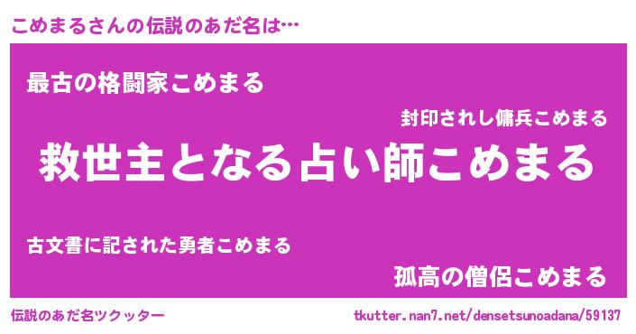 | ヒーロー風カッコイイあだ名 | 『究極戦士コメマル』『暗黒騎士コメ』 |