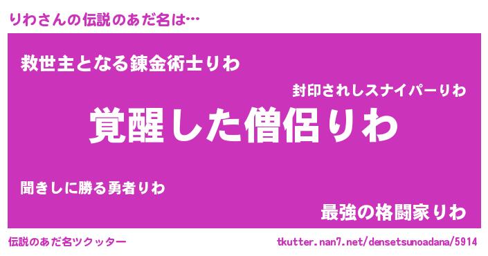 | ヒーロー風カッコイイあだ名 | 『天弓騎士リワ』『慈愛の使者りわ』 |
