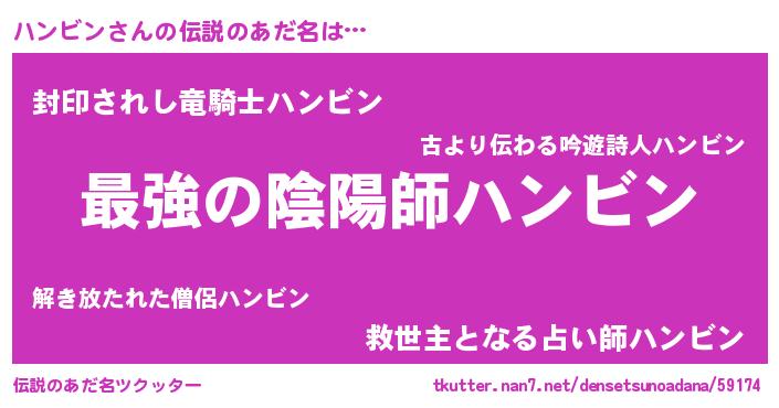 | ファンタジー風あだ名 | 『ゼハントゥ』『エターナルハンビンー』 |