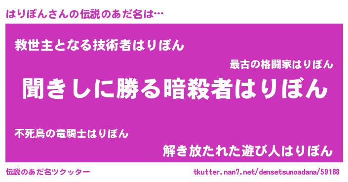 | 男性向けラノベタイトル風あだ名 | 『はりぼんという概念が存在しない退屈な世界 』 |