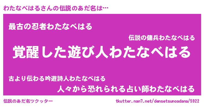 | 肩書あだ名 | 『わたなべはる塾長』『わたなべはる少将』 |
