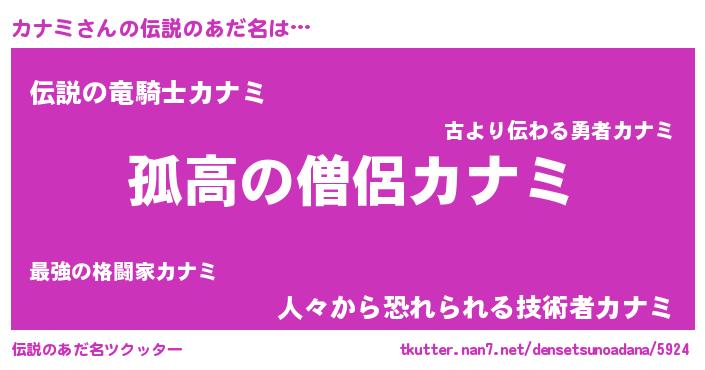 | ヒーロー風カッコイイあだ名 | 『黄金騎士カナ』『超時空戦士カナミ』 |
