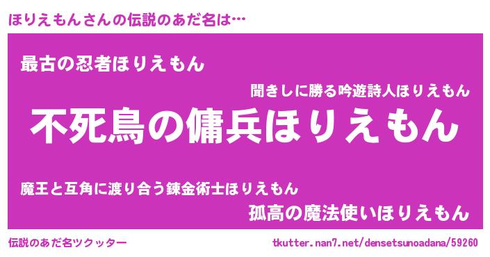 | 女子向けラノベタイトル風あだ名 | 『ほりえもん姫と円卓の騎士』 |