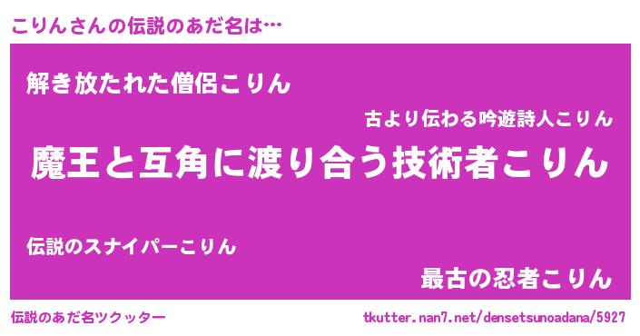 | ヒーロー風カッコイイあだ名 | 『愛の使者こりん』『幻影騎士コリ』 |