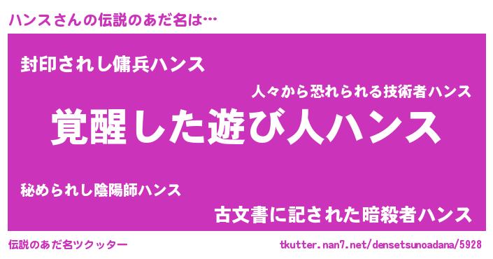 | 意味不明あだ名 | 『とにかく怪しいハンス』『自称ハンス』 |