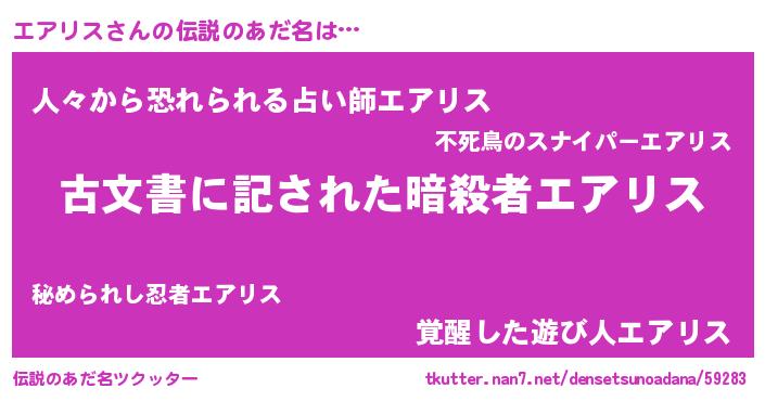 | ファンタジー風あだ名 | 『エアディッシュ』『クインエット』 |