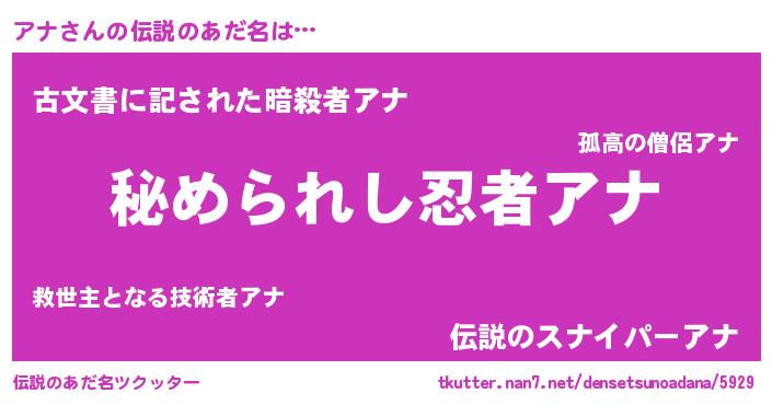 | ヒーロー風カッコイイあだ名 | 『ウルトラアナマン』『ネオアナ』 |