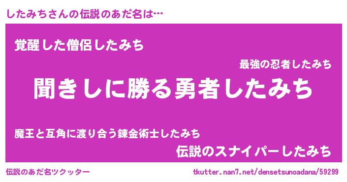 | 意味不明あだ名 | 『自称したみち』『永久保存したみち』 |