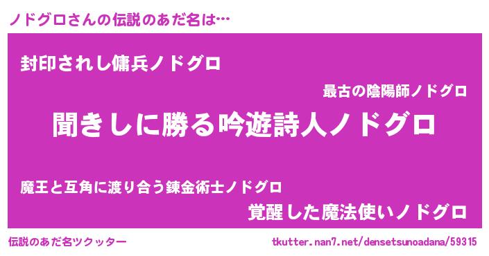 | 意味不明あだ名 | 『自称ノドグロ』『永久保存ノドグロ』 |