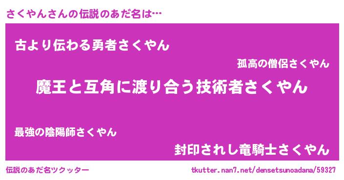 | 意味不明あだ名 | 『自称さくやん』『永久保存さくやん』 |