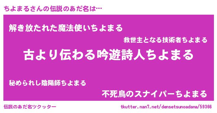| 男性向けラノベタイトル風あだ名 | 『転生したらちよまるだった件』 |