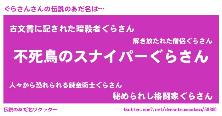 | 胡散臭い通販商品みたいなあだ名 | 『モテモテ間違いなし霊験あらたかなお札…その名も「ぐらさん」』 |