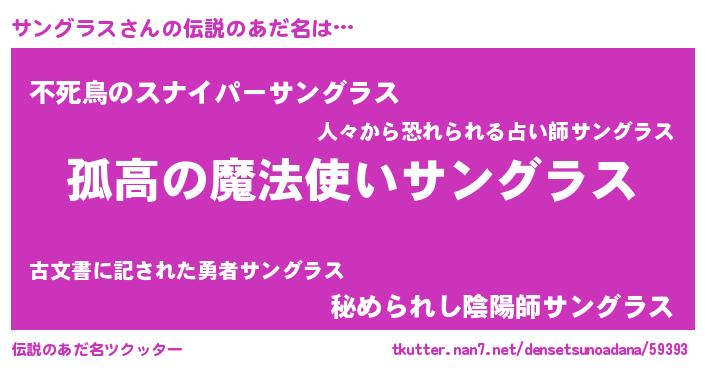 | 意味不明あだ名 | 『とにかく怪しいサングラス』 |