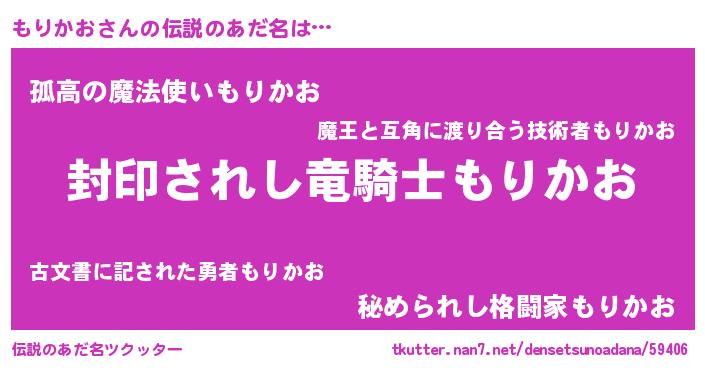 | ヒーロー風カッコイイあだ名 | 『仮面モリダー』『スーパーモリカオ』 |