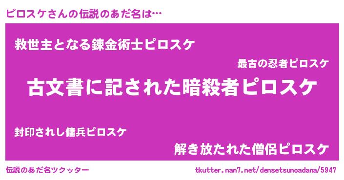 | ヒーロー風カッコイイあだ名 | 『ネオピロスケ』『仮面ピロダー』 |