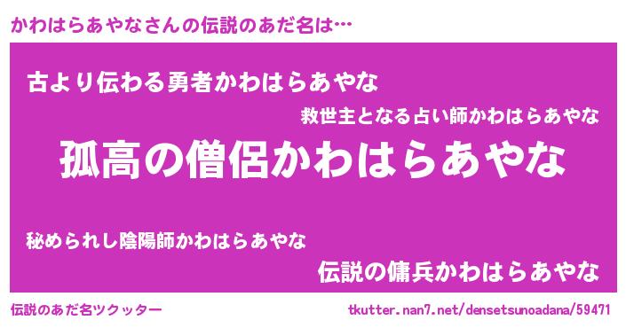 | 意味不明あだ名 | 『とにかく怪しいかわはらあやな』 |