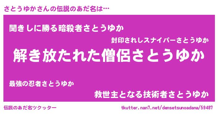 | ヘコむあだ名 | 『さとっぺ』『さとうゆか(爆)』 |
