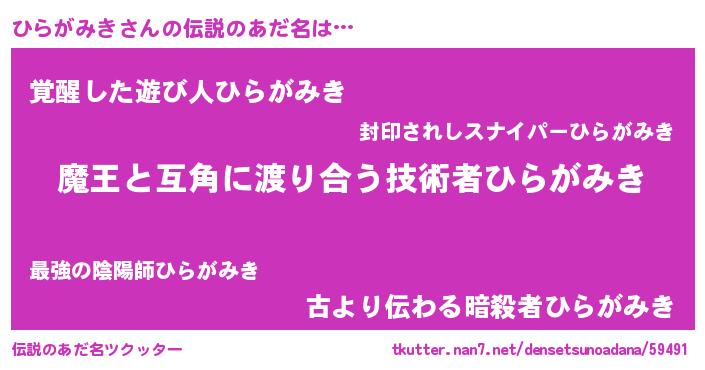 | ヒーロー風カッコイイあだ名 | 『友情の使者ひらがみき』『仮面ヒラダー』 |
