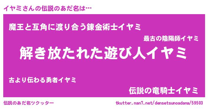 | ヒーロー風カッコイイあだ名 | 『幻影騎士イヤ』『ウルトラ戦士イヤミ』 |