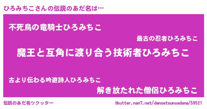 | 女子向けラノベタイトル風あだ名 | 『闇のひろみちこ』『ひろみちこ恋絵巻』 |