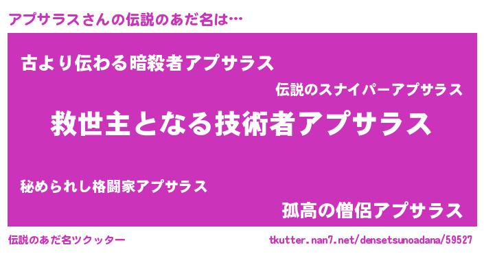 | ヘコむあだ名 | 『アプサラス(笑)』『アプっ子』 |