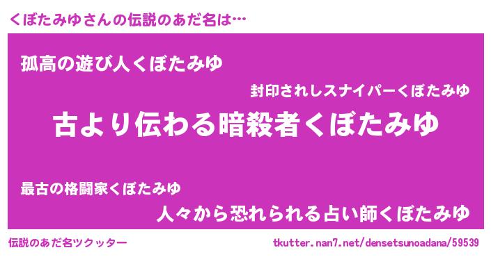 | 意味不明あだ名 | 『住所不定無職くぼたみゆ(59歳)』 |