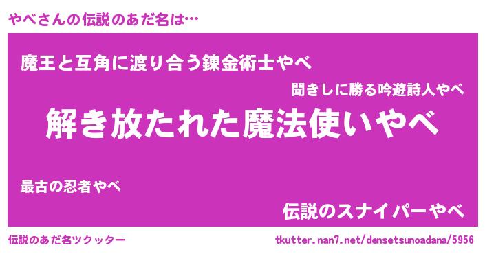 | 意味不明あだ名 | 『自称やべ』『とにかく怪しいやべ』 |
