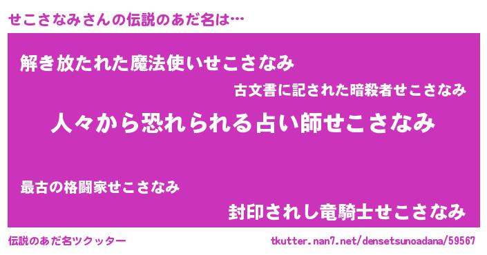 | ヒーロー風カッコイイあだ名 | 『仮面セコダー』『愛の使者せこさなみ』 |