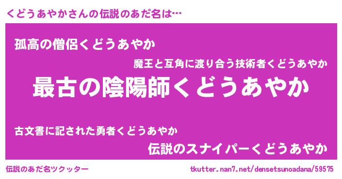| ファンタジー風あだ名 | 『エターナルクドウアヤカー』 |