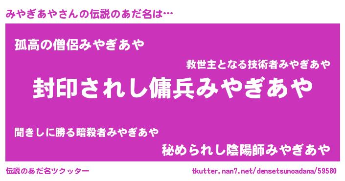 | ポケモン風あだ名 | 『ミヤチュウ』『ヒミヤギアヤ』 |