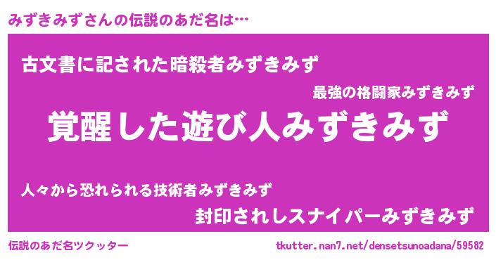 | 男性向けラノベタイトル風あだ名 | 『みずきみずの嫁は女の子じゃないと思った?』 |