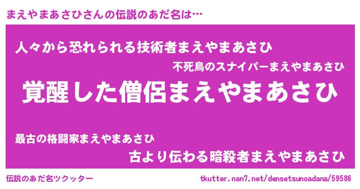 | ヘコむあだ名 | 『まえっ子』『まえやまあさひ(笑)』 |