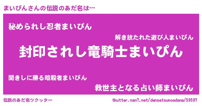 | ヒーロー風カッコイイあだ名 | 『スーパーマイピン』『仮面マイダー』 |