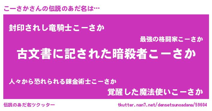 | 胡散臭い通販商品みたいなあだ名 | 『前代未聞の健康食品…その名も「こーさか」』 |