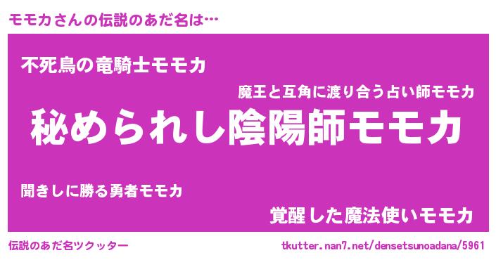 | 女子向けラノベタイトル風あだ名 | 『モモカの雑貨屋さん』『闇のモモカ』 |