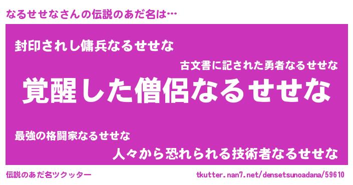 | 女子向けラノベタイトル風あだ名 | 『なるせせなストレイドッグス』 |