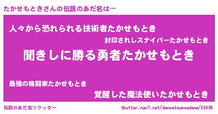 | 意味不明あだ名 | 『自称たかせもとき』 |