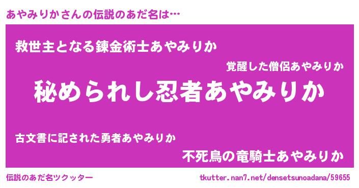 | 意味不明あだ名 | 『あやみりかフォーエバー』 |