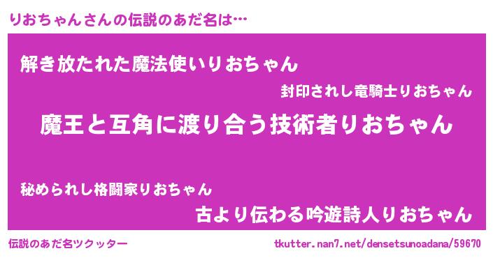 | ヒーロー風カッコイイあだ名 | 『愛の使者りおちゃん』『幻影騎士リオ』 |