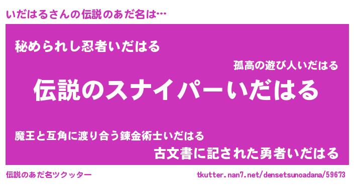 | ヒーロー風カッコイイあだ名 | 『スーパーイダハル』『仮面イダダー』 |