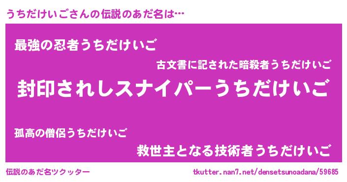 | 意味不明あだ名 | 『住所不定無職うちだけいご(91歳)』 |