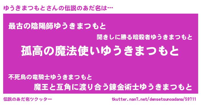 | 女子向けラノベタイトル風あだ名 | 『ゆうきまつもとは平凡を望む』 |