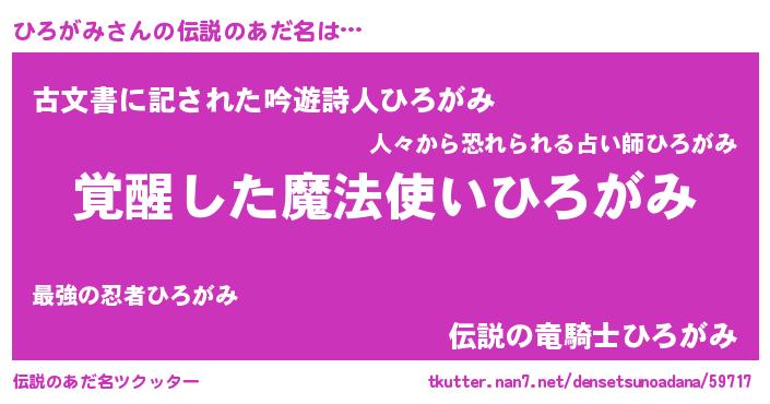 | 意味不明あだ名 | 『とにかく怪しいひろがみ』 |