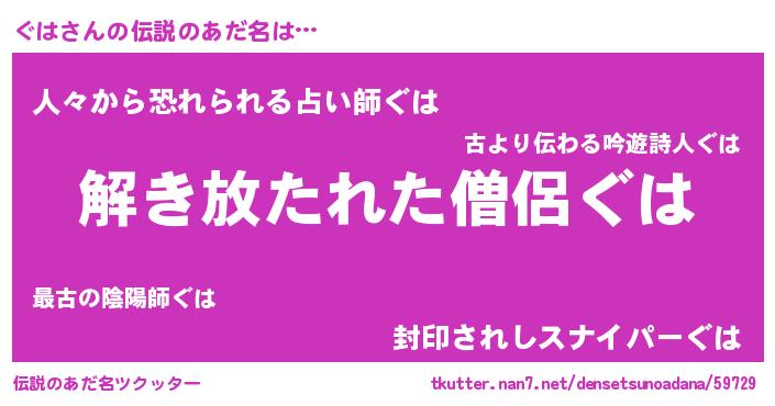 | ヒーロー風カッコイイあだ名 | 『仮面グハダー』『黄金騎士グハ』 |