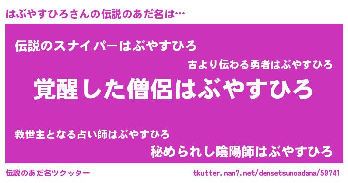| 意味不明あだ名 | 『とにかく怪しいはぶやすひろ』 |