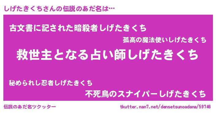 | ヘコむあだ名 | 『しげたきくち(爆)』『しげもー』 |