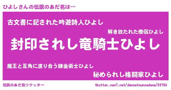 | 意味不明あだ名 | 『住所不定無職ひよし(2歳)』『自称ひよし』 |