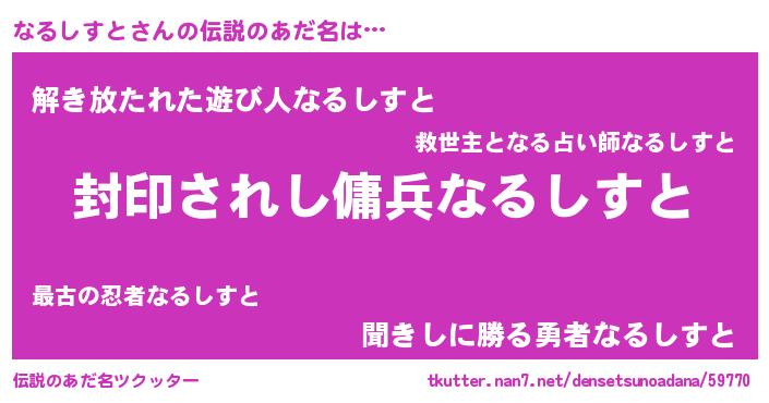 | ヒーロー風カッコイイあだ名 | 『スーパーナルシスト』『魔戒騎士ナル』 |