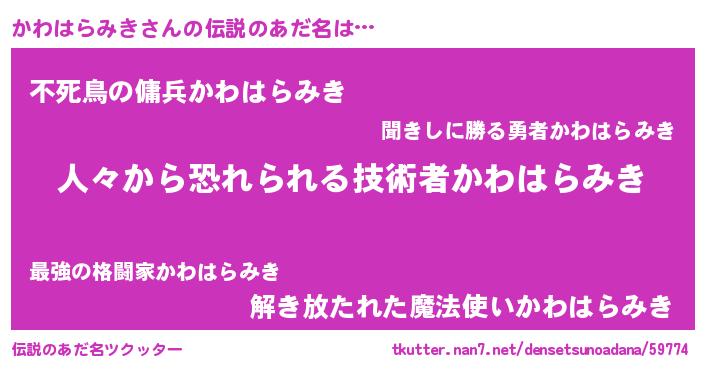 | 胡散臭い通販商品みたいなあだ名 | 『100人中100人が認めたマグネット磁石…その名も「かわはらみき」』 |