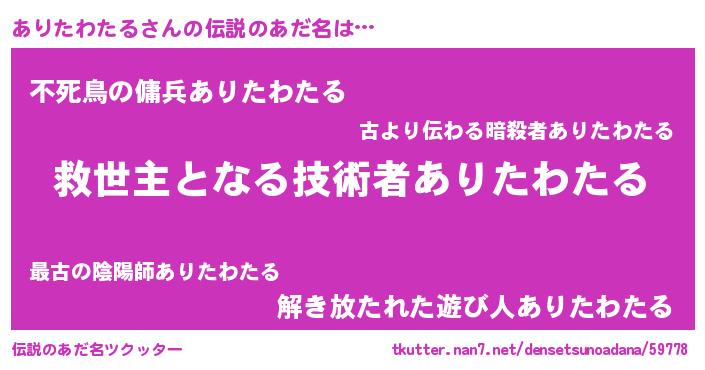 | ヒーロー風カッコイイあだ名 | 『慈愛の使者ありたわたる』 |